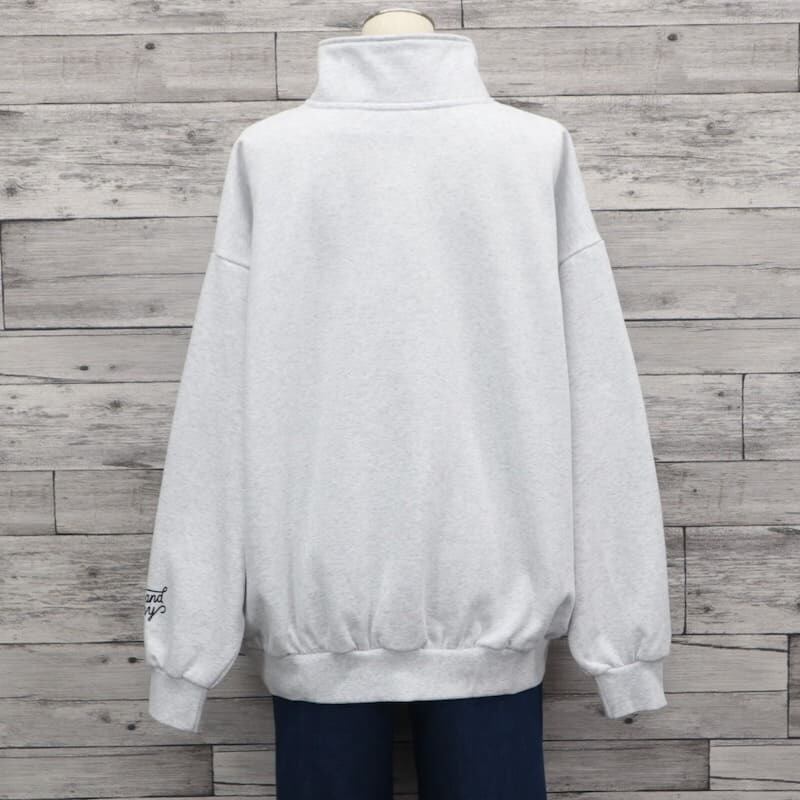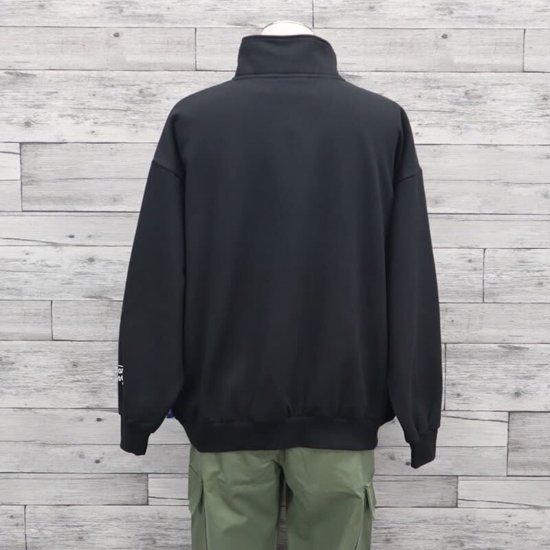 ハーフジップの襟元は立てても開けてもきれいに見えるようにデザインされています。