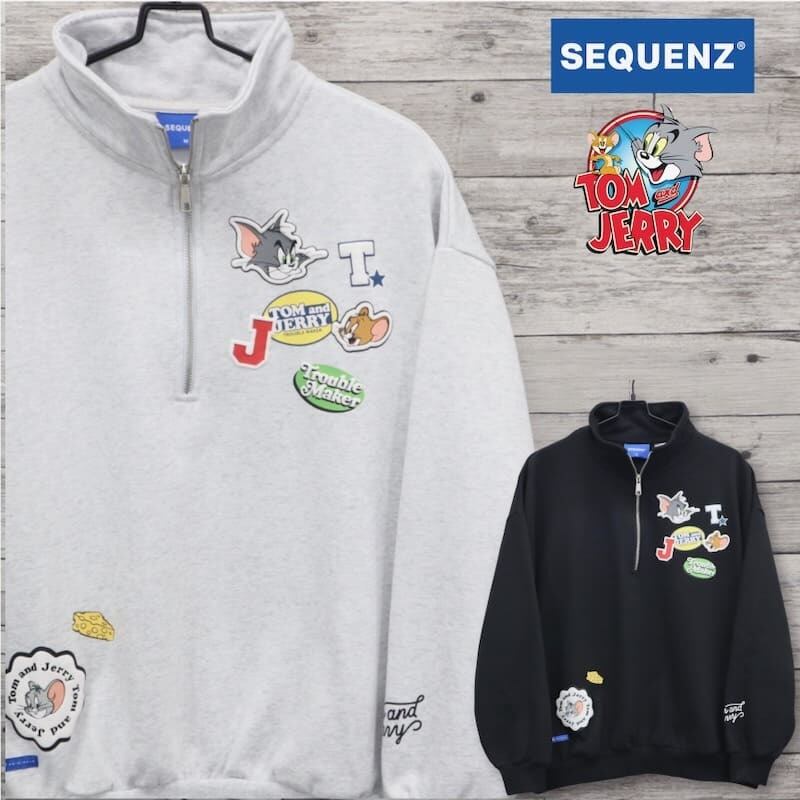 人気キャラクター「トムとジェリー」とストリートブランド「SEQUENZ」のコラボハーフジップスウェット。
