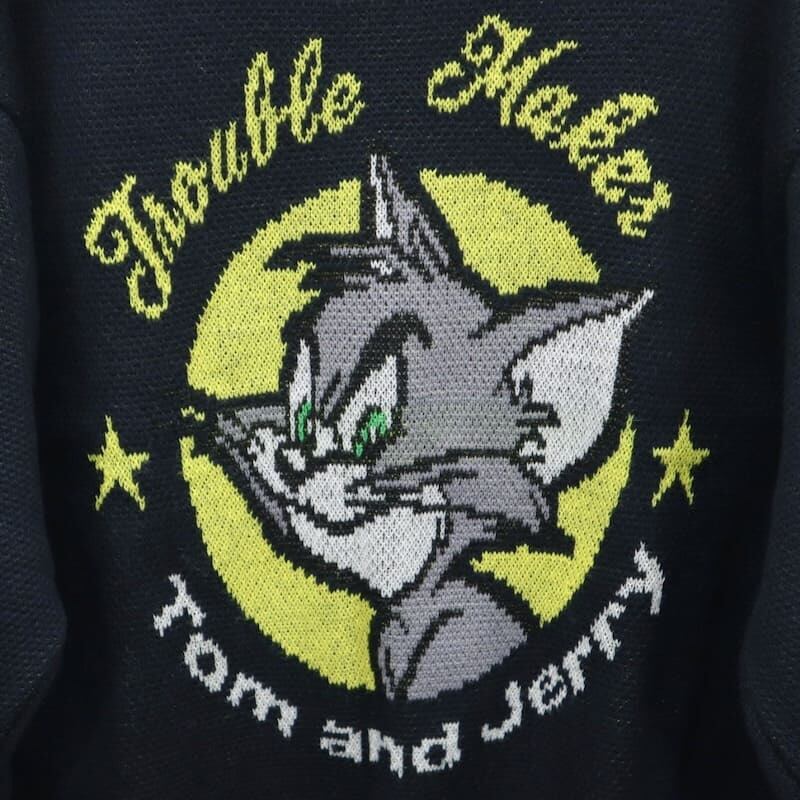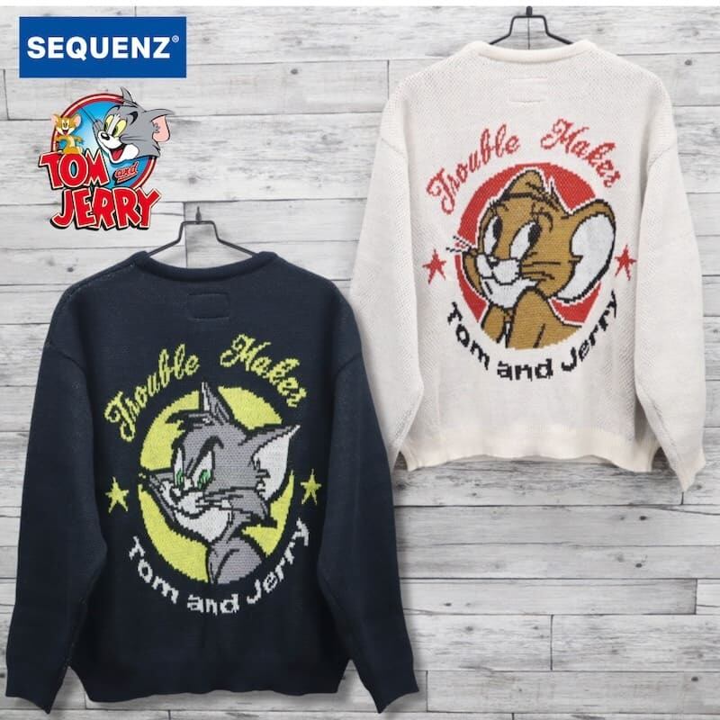 人気キャラクター「トムとジェリー」とストリートブランド「SEQUENZ」のコラボニットトップス。