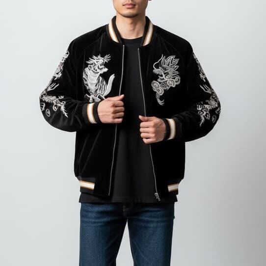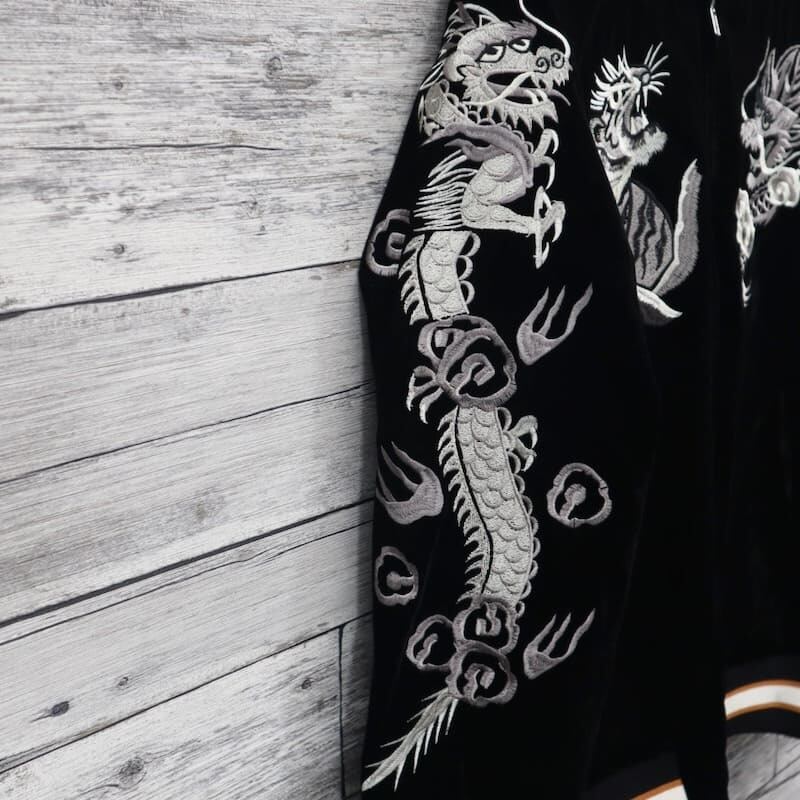 本格仕様の総刺繍仕上げでアメカジとしても和柄ファッションとしてもかっこよく着こなせます。