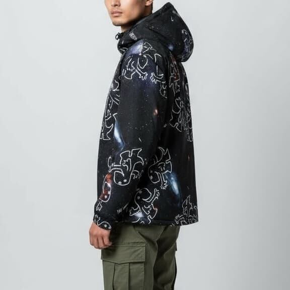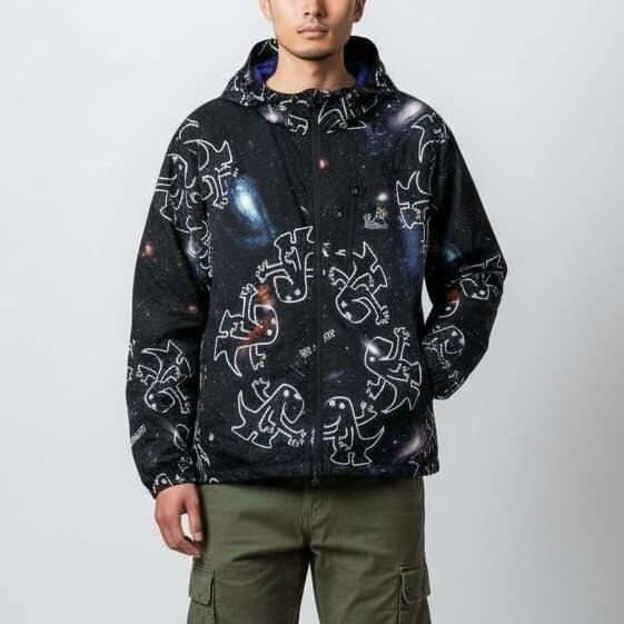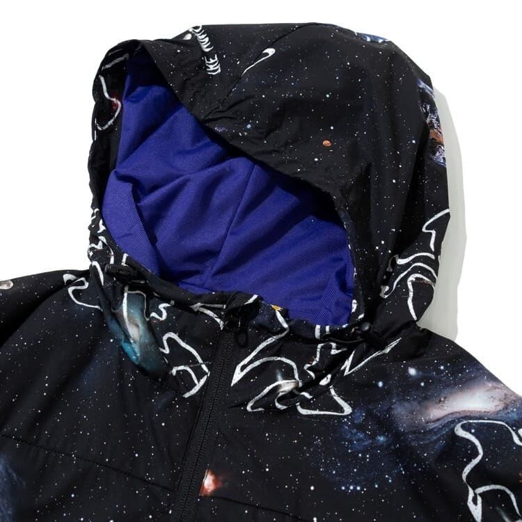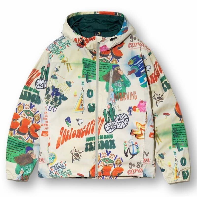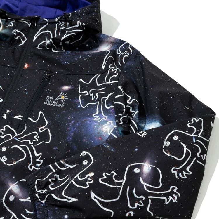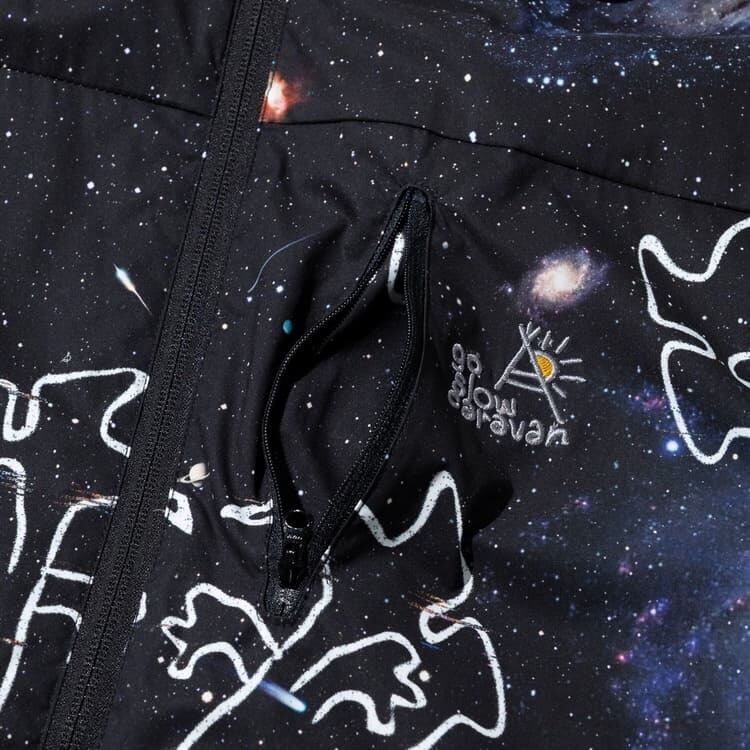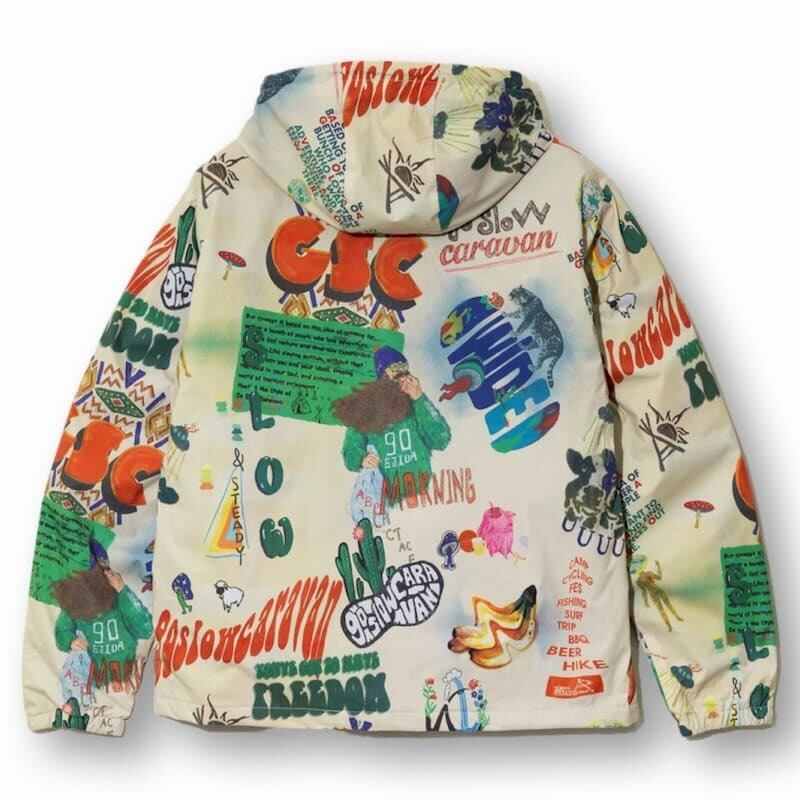 【送料無料】ゴースローキャラバン go slow caravan パーカー ジャケット ブルゾン アウター 総柄 宇宙 ロゴ イラスト プリント 軽量 ライトアウター アウトドア ユニセックス メンズ レディース ベージュ 黒 ブラック | DEF STORE