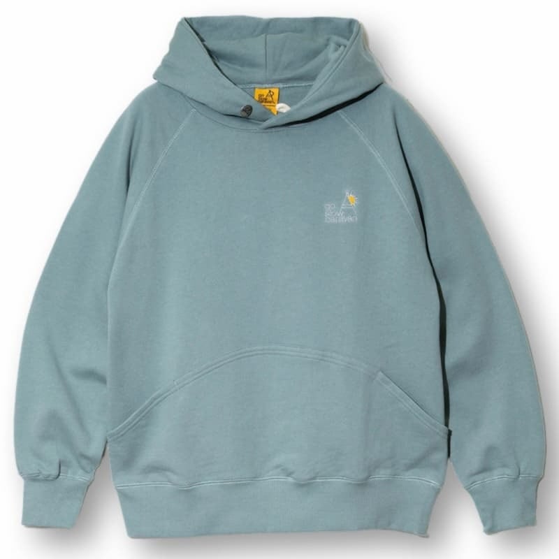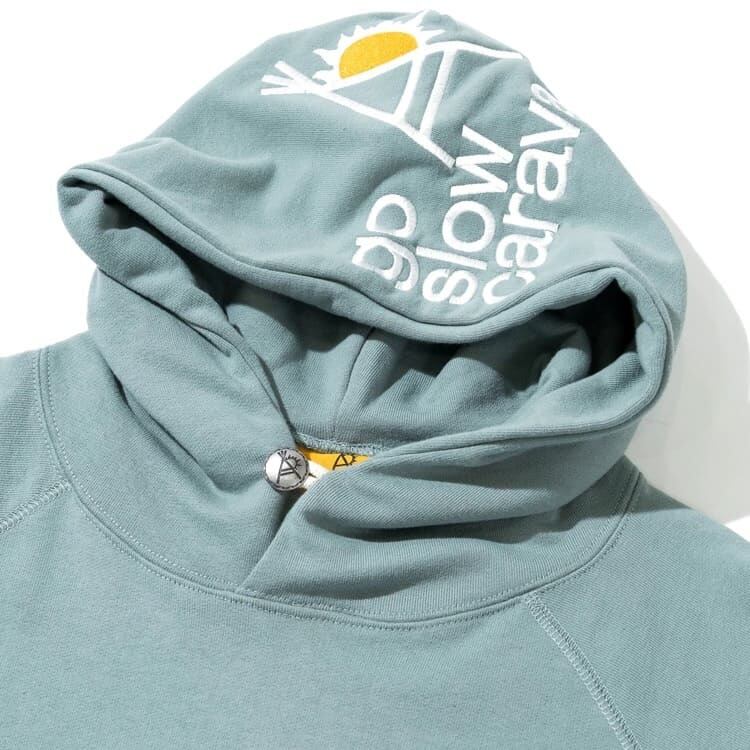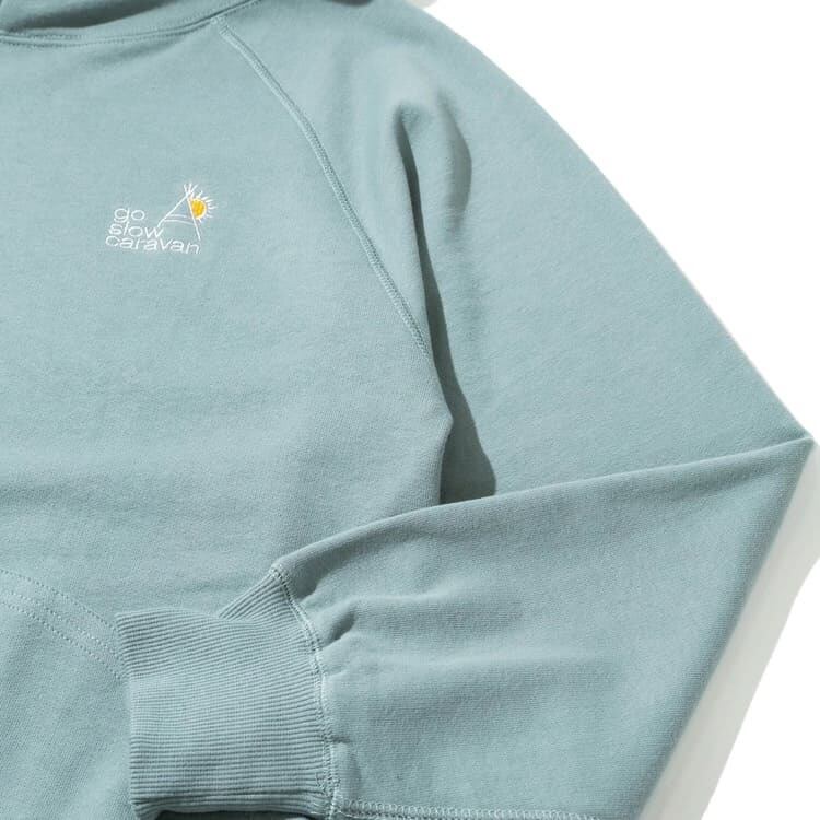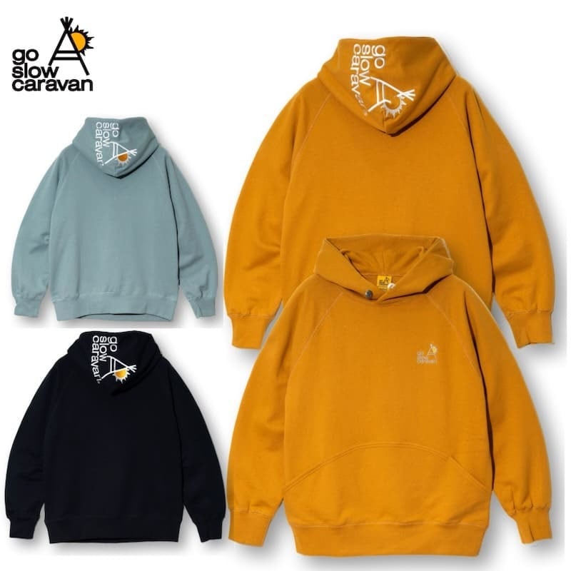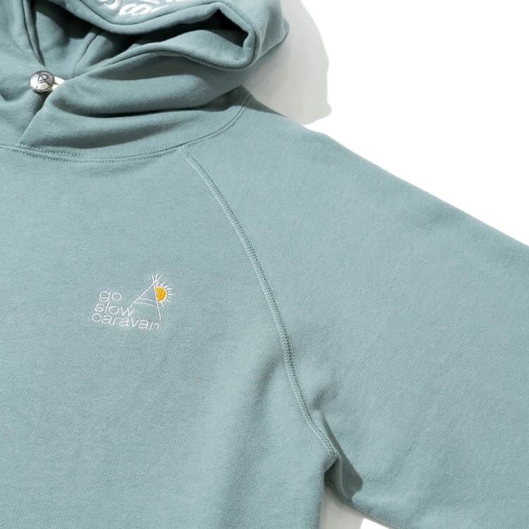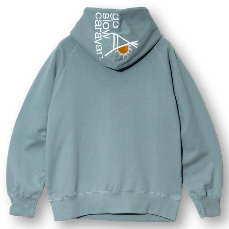 【送料無料】ゴースローキャラバン goslowcaravan 長袖 裏毛 パーカー フーディー プルオーバー フード刺繍 ロゴ コンチョボタン ユニセックス メンズ レディース ミントグレー タン 黒 ブラック | DEF STORE