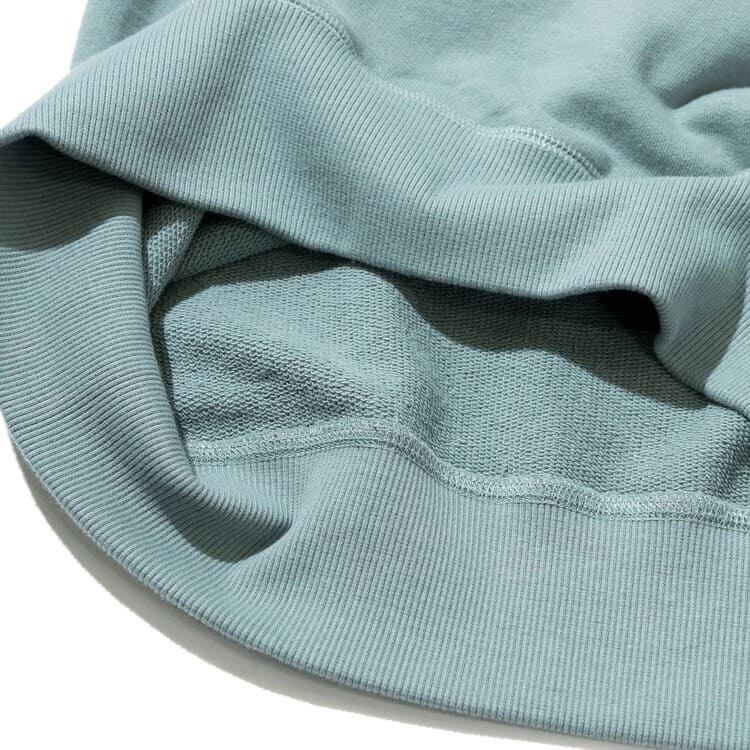 表は空紡糸らしいガシッとした肌触りでありながら、裏のパイル面には太い裏糸を使用しているので空気を多く含みフワッと柔らかい着心地を実現。