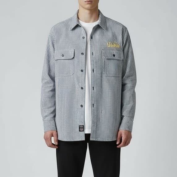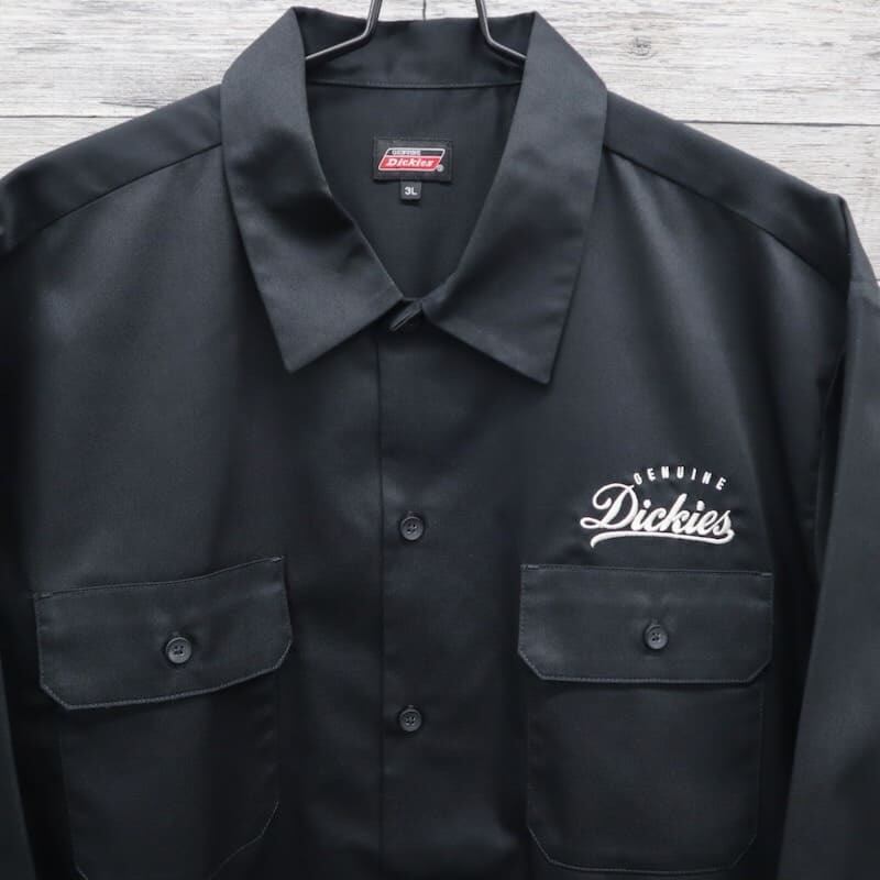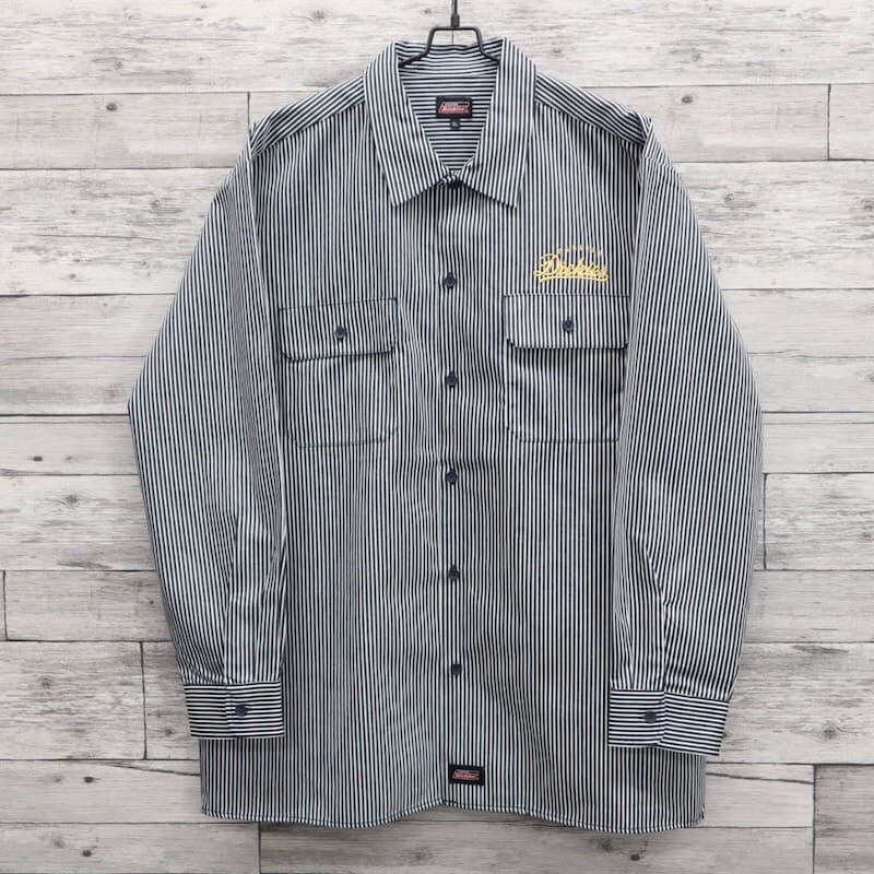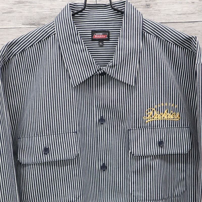 【送料無料】大きいサイズ メンズ ディッキーズ GENUINE Dickies ジェニュインディッキーズ ツイル ワーク シャツ 長袖 カジュアルシャツ アメカジ キングサイズ レディース ユニセックス 黒 ブラック ヒッコリー ストライプ 3L 4L 5L | DEF STORE