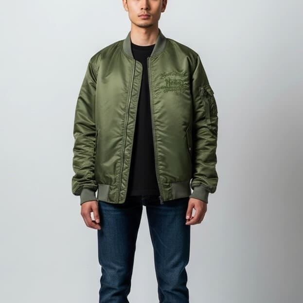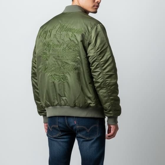 ミリタリーテイストのフライトジャケットに刺繍をプラスし、唯一無二のデザインに仕上げています。