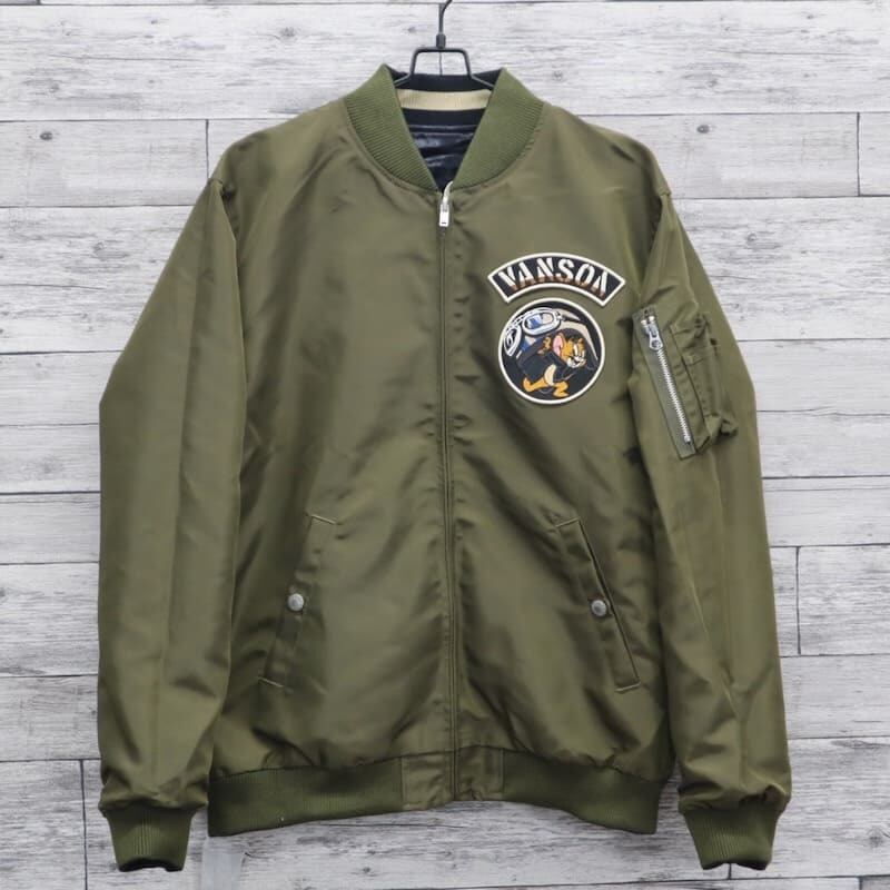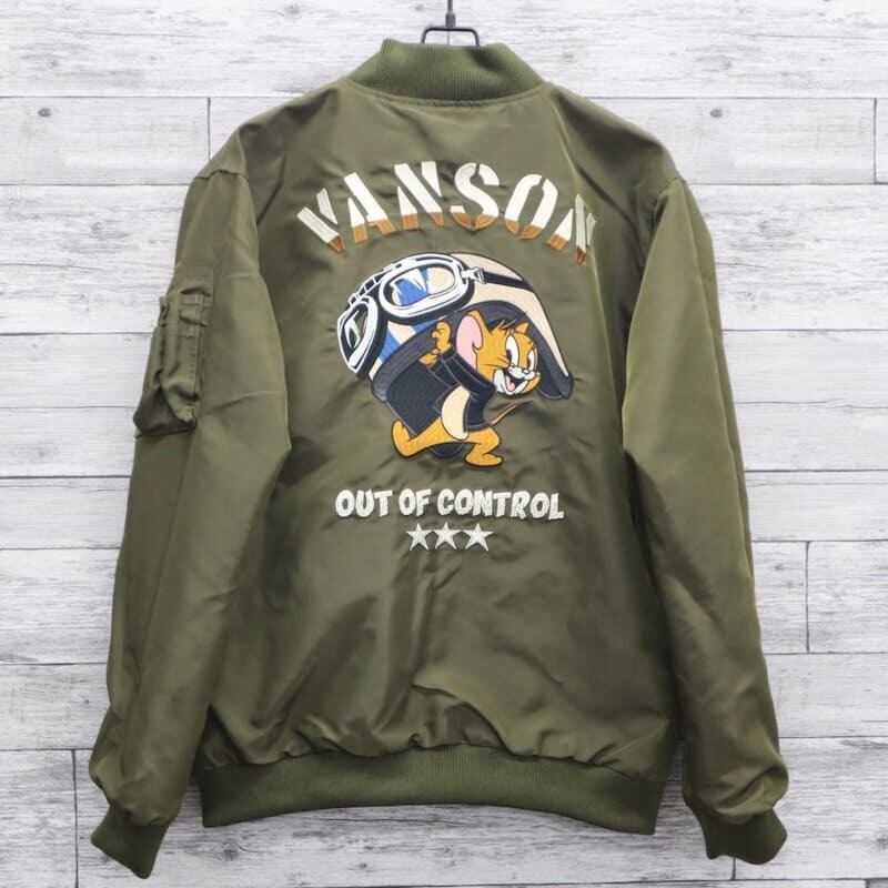 【送料無料】メンズ バンソン VANSON トムとジェリー トムジェリ TOM & JERRY コラボ スカジャン MA-1 ブルゾン アウター スーベニアジャケット ミリタリー フライトジャケット リバーシブル 刺繍 ユニセックス レディース 黒 ブラック カーキグリーン