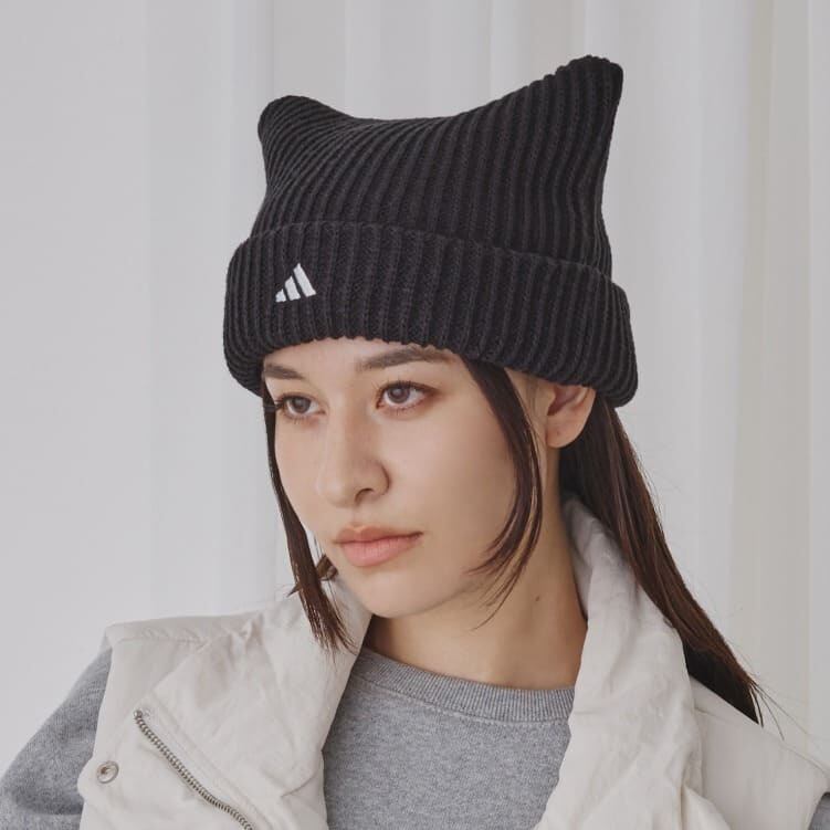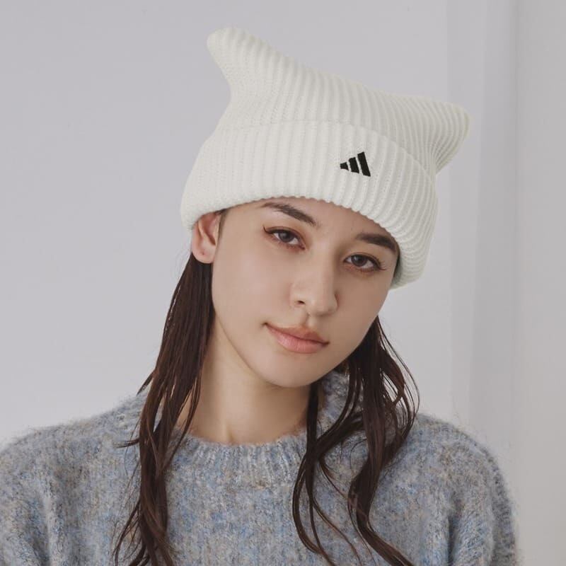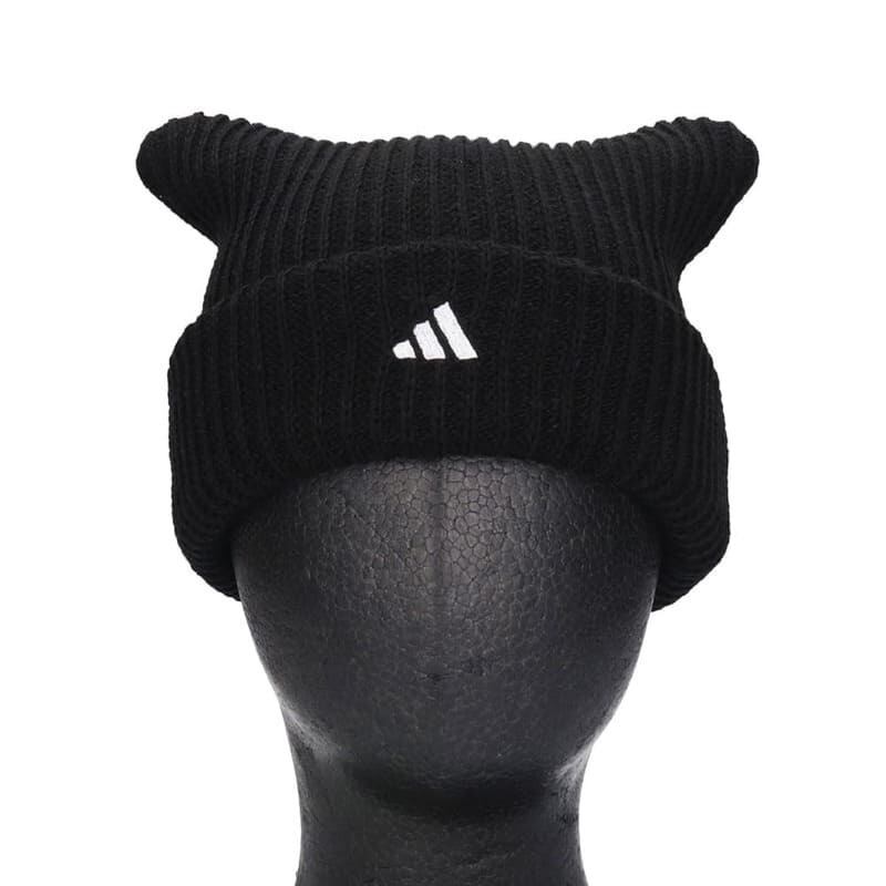 【送料無料】adidas アディダス 正規品 ニット帽 ニットキャップ ビーニー ネコ耳 ねこ耳 猫耳 スクエア ロゴ 刺繍 三本ライン メンズ レディース ユニセックス 白ホワイト 黒 ブラック 253011606