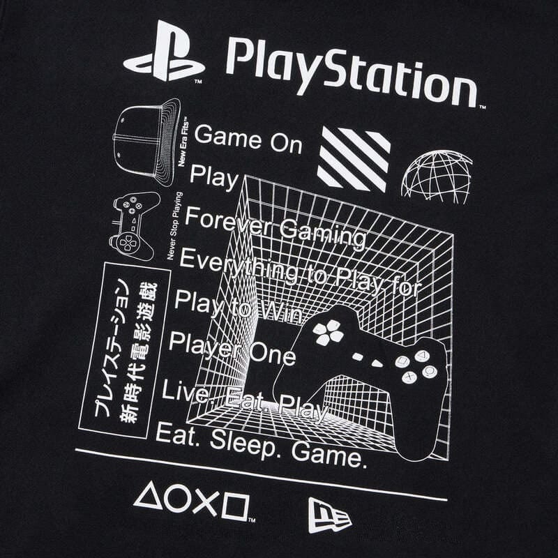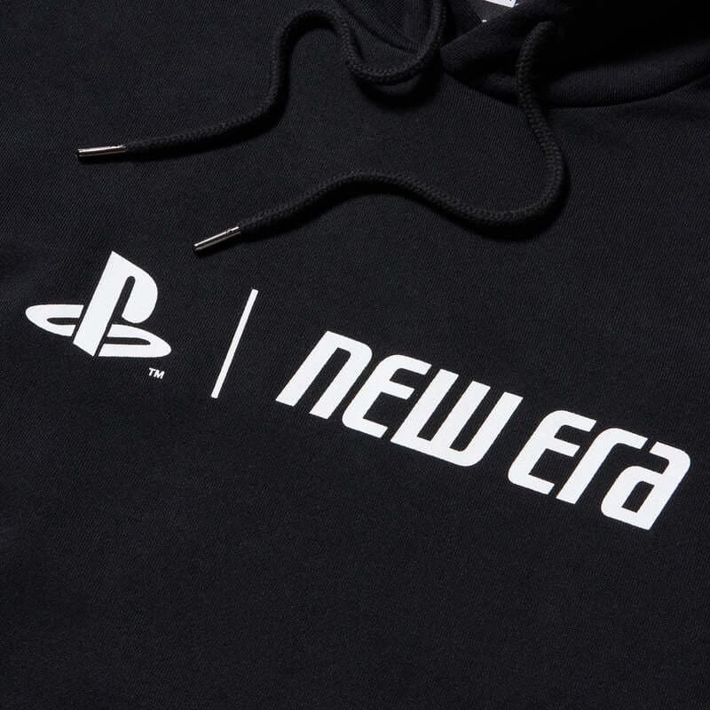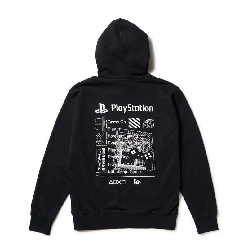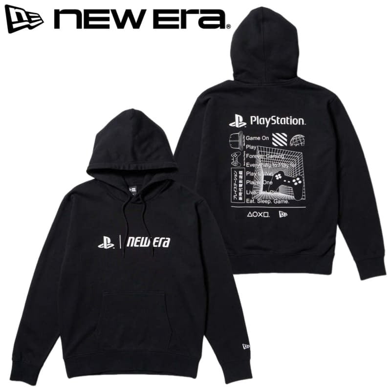 誰もが目にしたことのあるPlayStationのロゴとNEW ERAロゴをフロントにプリントした長袖パーカー。