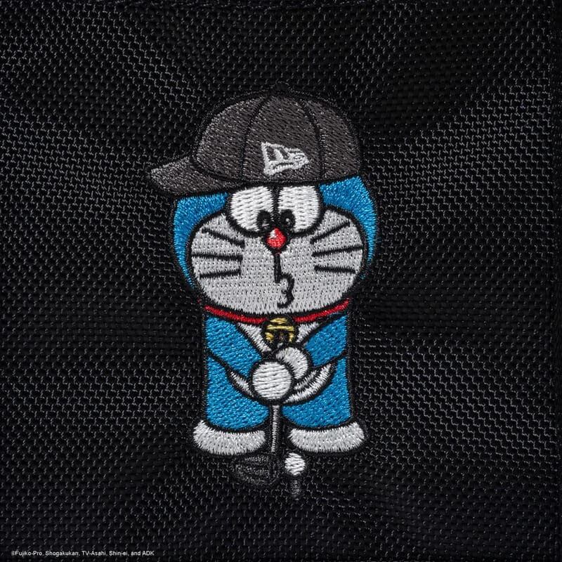 ニューエラキャップを被りゴルフをするドラえもんのアートワークを使用。