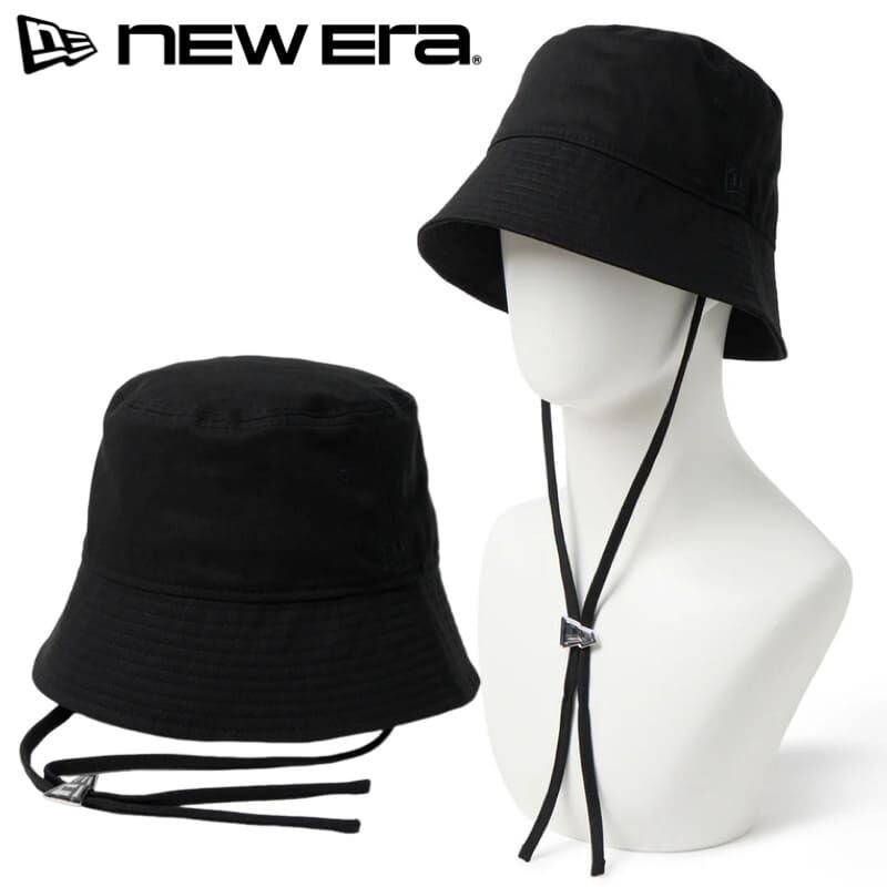 NEWERA ニューエラ 正規品 NEW ERA バケット ハット 帽子 バケハ 刺繍 ロゴ ローアングル セーラーブリム ストラップ付 あご紐 あごひも ユニセックス レディース メンズ 黒 ブラック 14744764 | DEF STORE