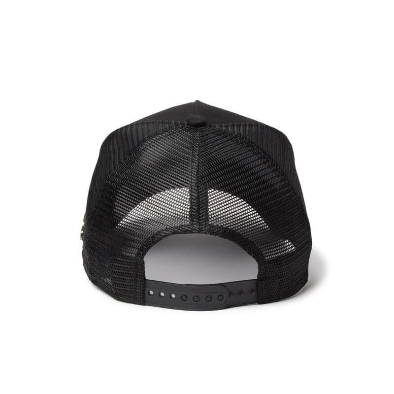 メタル仕様のフラッグロゴが際立つ、ミニマルながらも印象的なメッシュキャップ。