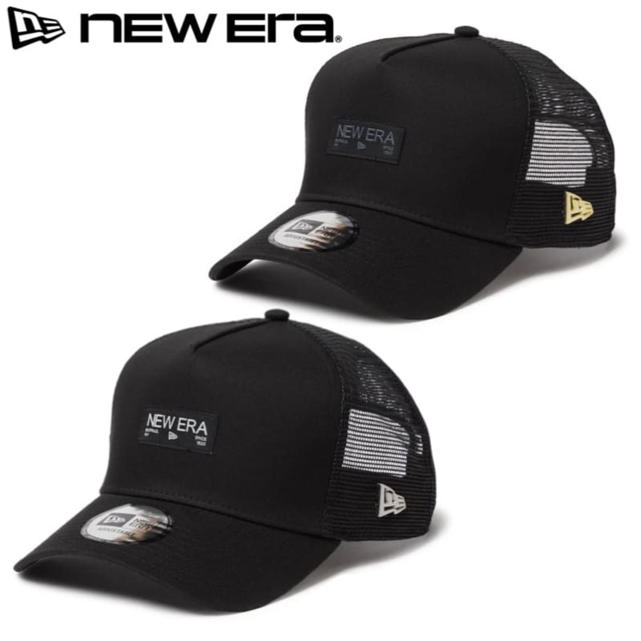 NEWERA ニューエラ 正規品 メッシュ キャップ メッシュキャップ CAP 帽子 9FORTY A-Frame メタルフラッグ ウーブンラベル ユニセックス メンズ レディース スナップバック 黒 ブラック 金 ゴールド 銀 シルバー 14744909 14744910