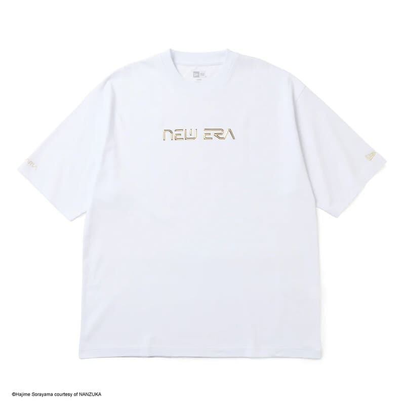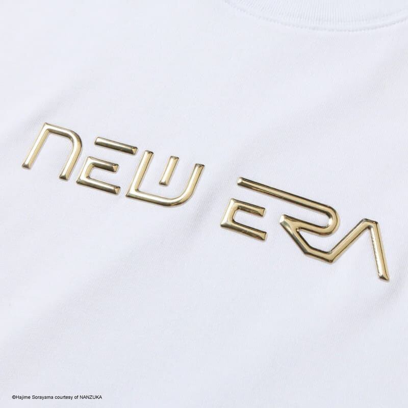 空山氏ならではのオリジナルフォントで特別に制作されたニューエラロゴを、ゴールド・シルバーのTPU素材でデザインした半袖Tシャツ。