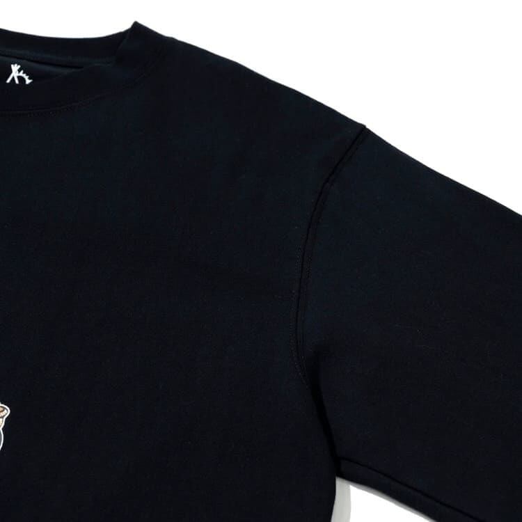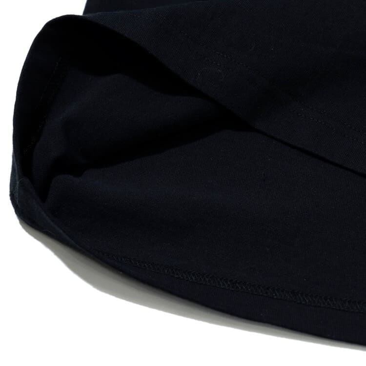 米綿ならではのシャリ感と柔らかさもある6.8ozのしっかりとした生地で、首回りや袖口は、着用お洗濯を繰り返しても伸びづらいフライスリブ素材を使用。