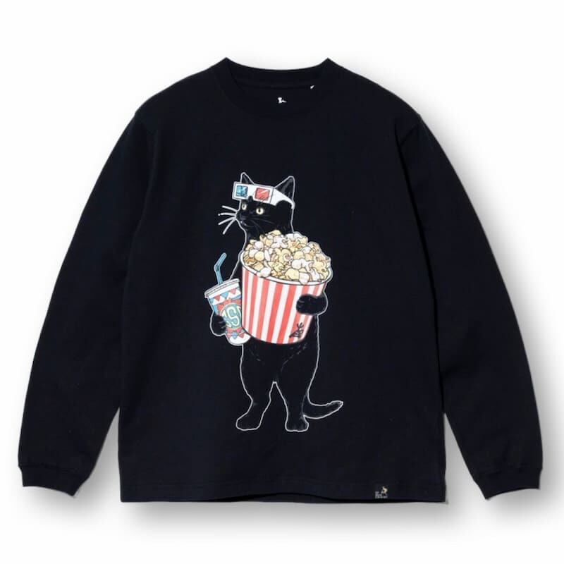 ボディーカラーごとに黒猫・白猫のプリントを採用し、カラー違いで集めたくなる一枚。