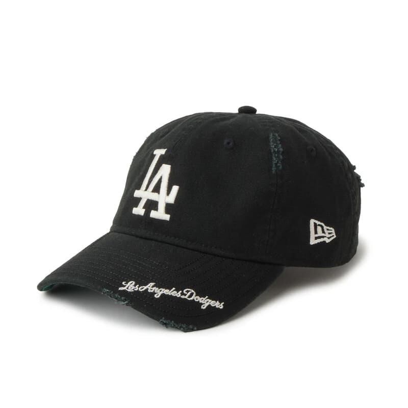 NEWERA ニューエラ 正規品 キャップ ロサンゼルス ドジャース LA MLB CAP 帽子 9TWENTY バイザーロゴ 刺繍 ダメージ加工 ユニセックス メンズ レディース ストーン 黒 ブラック 14745078 14745079 M/L