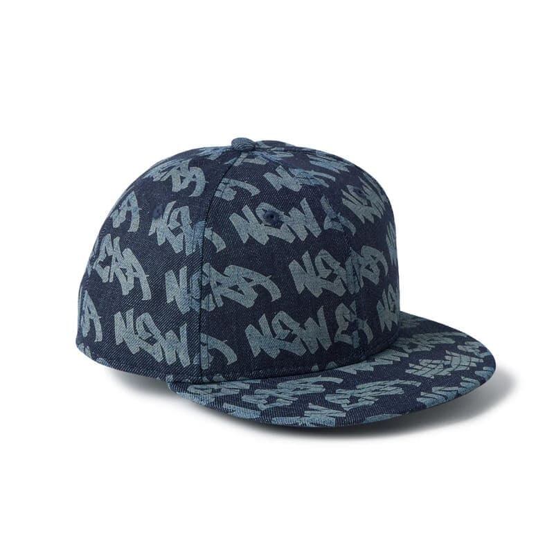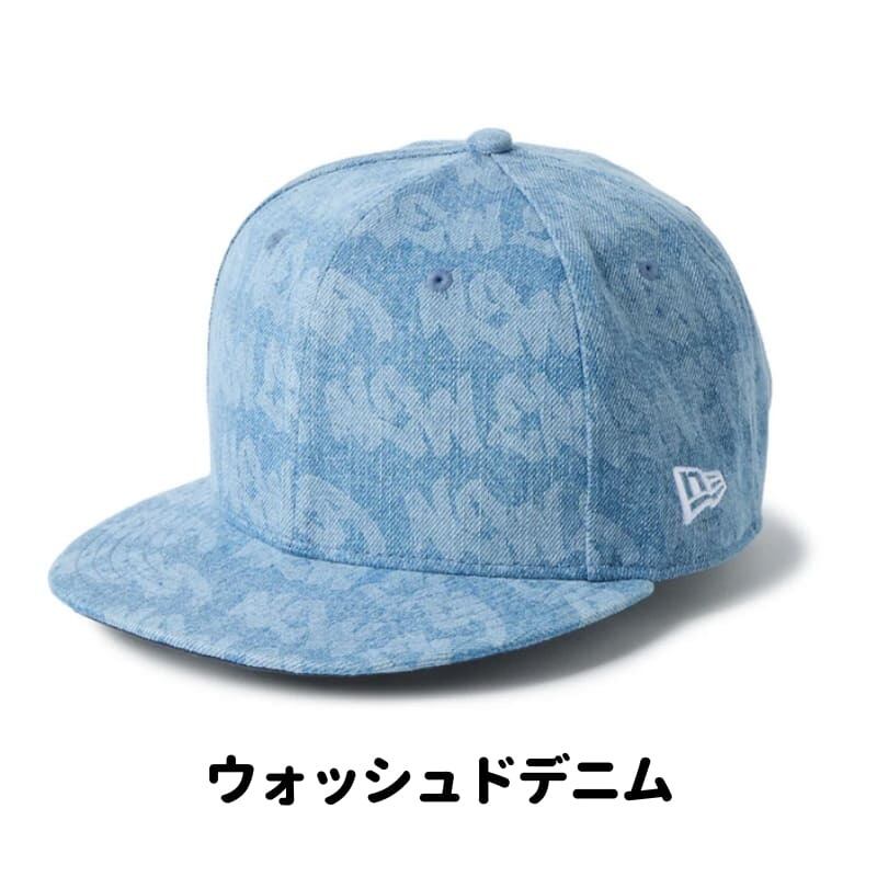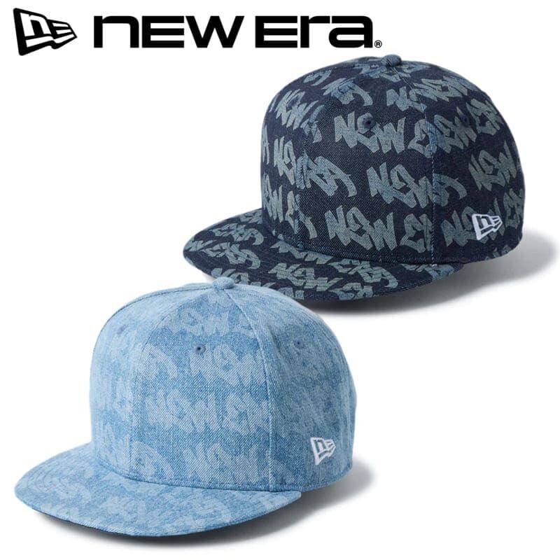 NEWERA ニューエラ 正規品 キャップ CAP 帽子 9FIFTY デニム 総柄 ロゴ ストレートキャップ フラットバイザーユニセックス メンズ レディース スナップバック ノンウォッシュデニム ウォッシュドデニム 青 ブルー M/L 14744821 14744820