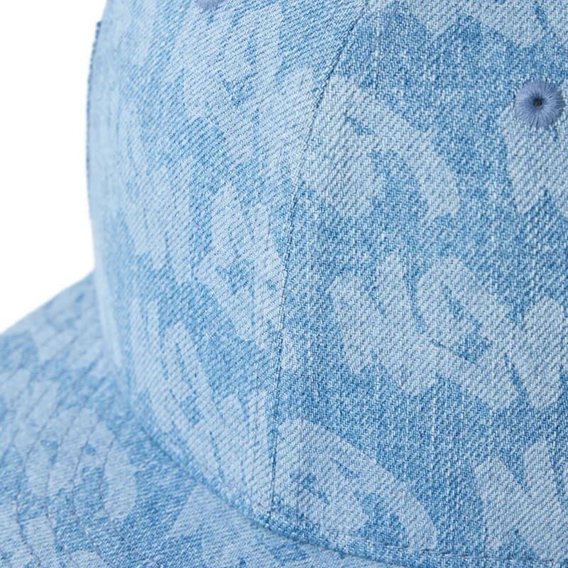 特殊なレーザー加工により、デニム生地にロゴパターンを表現した印象的なデザイン。